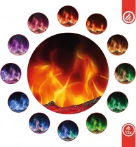 abgerundet durch natürliche LED-Flammeneffekte in 12 Farben