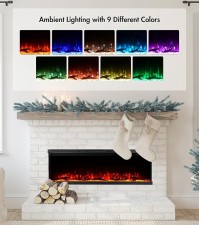 Elektroheizung 3-seitiger Luxus Elektrokamin Kamin freistehend auf Tisch oder Sideboard elektrischer Flammeneffekt mit 9 Farben 900 – 1800 Watt 127 cm Alternative zum Heizstrahler