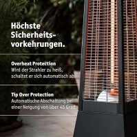 Der Turmheizstrahler kann in verschiedenen Winkeln ausgerichtet werden,