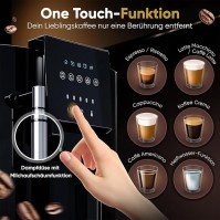 Kaffeevollautomat Milchaufschäumer Düse für Cappuccino Kegelmahlwerk mit Vorwärmfunktion für Tassen italienische Profipumpe Touchdisplay Kaffeemaschine