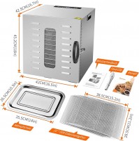 Dörrgerät Dörrautomat trocknen Obst Früchten Gemüse u.a. aus Edelstahl 1000 Watt 10 Stufen mit 30-90 °C einstellbarer Temperaturregelung 24-Stunden-Digitaltimer