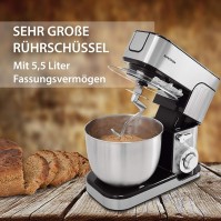 Fleischwolf leistungsstarke Küchenmaschine 1300 Watt Knetmaschine Mixer zeitloses Design 5,5 Liter Fassungsvermögen Edelstahl schwarz