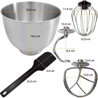 Fassungsvermögen der Edelstahlschüssel: 5,5 Liter.