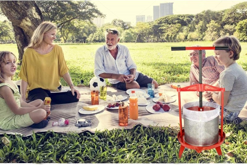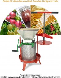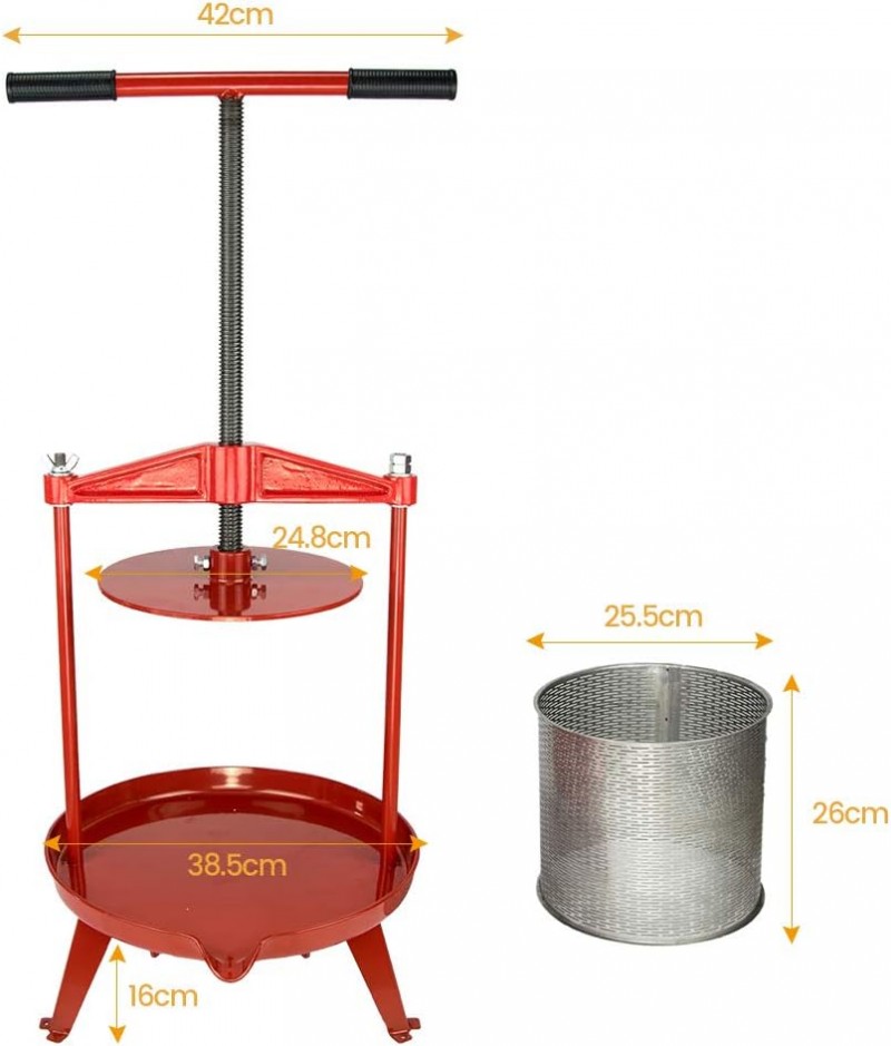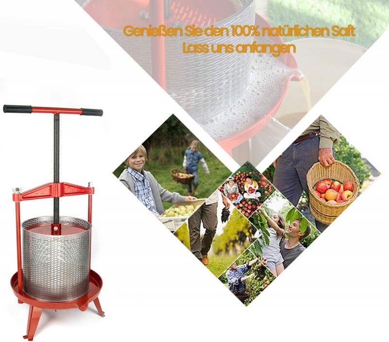 Obstpresse Apfelpresse Weinpresse Saftpresse Traubenpresse Beerenpresse 14 L aus Edelstahl mit T-Griff für selbstgemachten Natursaft