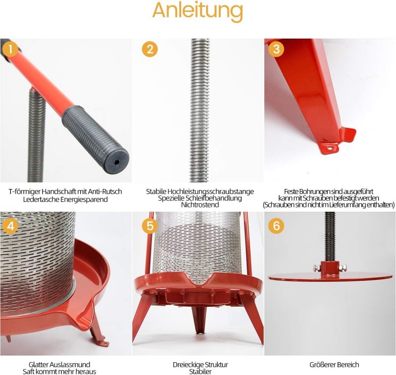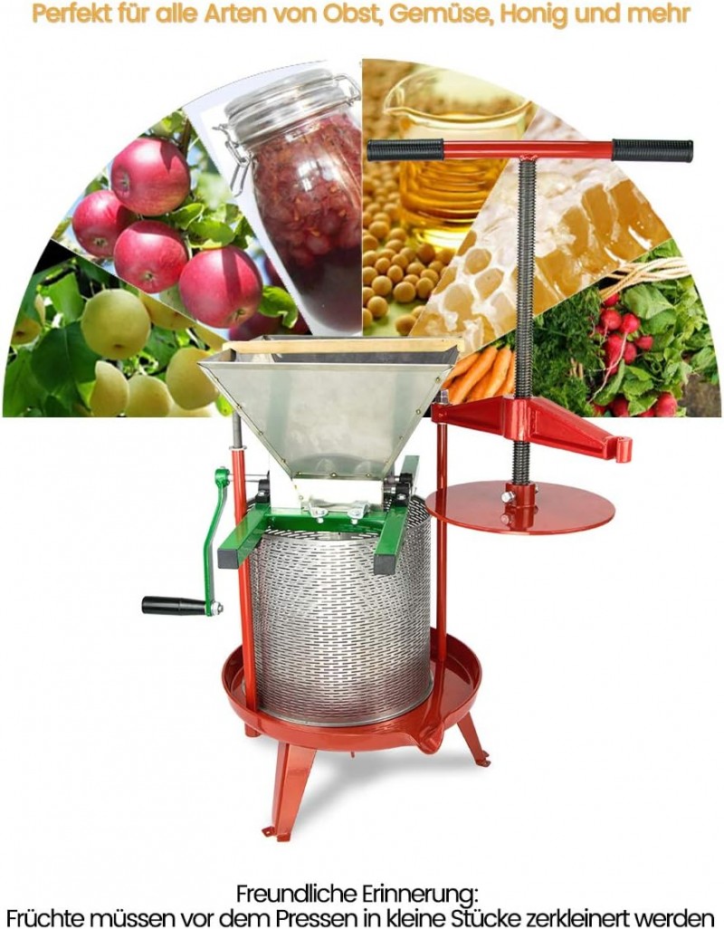 Obstpresse Apfelpresse Weinpresse Saftpresse Traubenpresse Beerenpresse 14 L aus Edelstahl