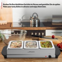 Speisenwärmer Buffet Warmhalteplatte 3 x 1,5 Liter 54,2 x 26 x 14 cm – 150 bis 300 Watt