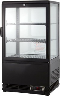 Diese Kühlvitrine für Gastronomie überzeugt mit 58 L Volumen, zwei Rosten und Glastür.