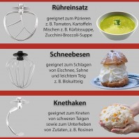 Flachrührer, Knethaken, Schneebesen, Spatel, Schüsseldeckel