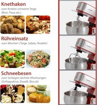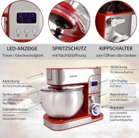 Küchenmaschine Küchenmixer Küchengerät Fleischwolf aus Edelstahl 7 Liter Zubehör für Teig und Cremes LED-Display Timerfunktion 1300 Watt einfache Bedienung (rot) [Energieklasse A]
