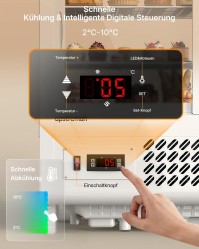 Die digitale Temperaturkontrolle hält einen konstanten Kühlbereich von 2°C bis 10°C .
