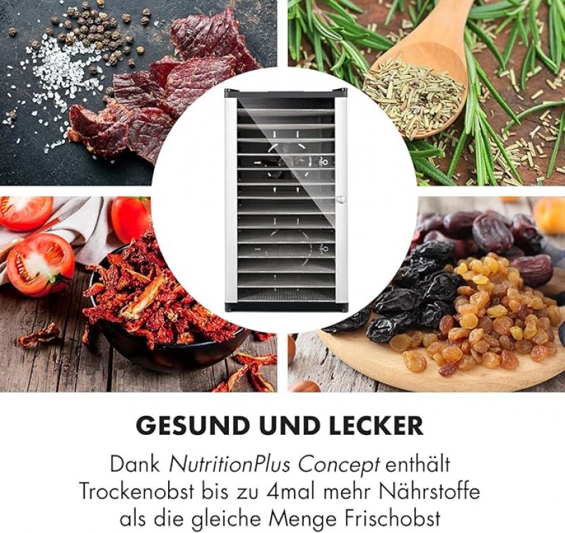 Trocknungsgerät Dörrgerät Lebensmittel 1,8 m² Obst-/Fleisch- und Früchte-Trockner 1,8 m² Trockenfläche und 14 Etagen 1000 Watt Leistung stufenlos bis 70°C