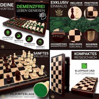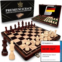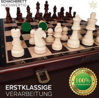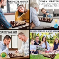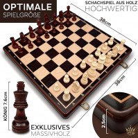 Premium Schachspiel Holz hochwertiges Massivholz 38 x 38 cm 2 extra Damen edles Schachbrett Holz hochwertiges faltbares Schachbrett mit 34 Schachfiguren Rei