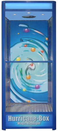 Ein toller Spaß für alle Mitspieler und Zuschauer. Die Hurricanebox Magic Highlight zieht Ihre Gäste magisch an. Ein tolles Erlebnis für Jung und Alt. In unserem Verleih können Sie diese Wirbelwindbox sehr günstig mieten.