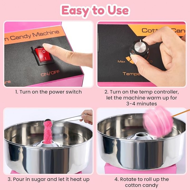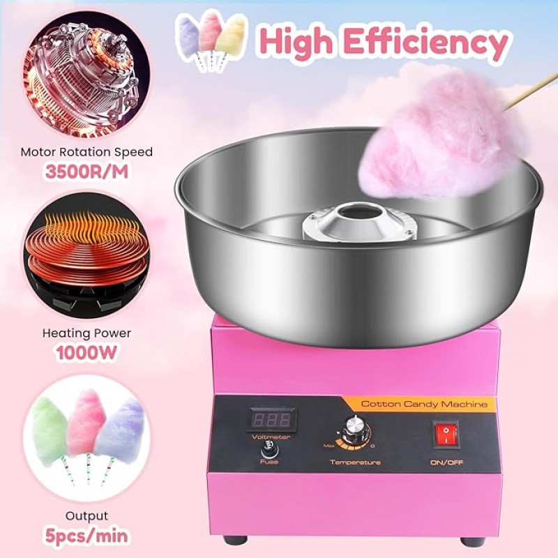 Elektrische Zuckerwattemaschine rosa Tischgerät kommerzieller Zuckerwattemaker 1000W mit Edelstahlschüssel Zuckerschaufel