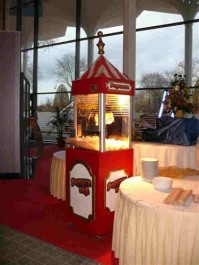 Großer professionelle Popcorn Maschine im nostalgischen Outfit.
