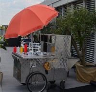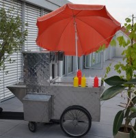 Dieser Hot Dog Wagen kommt original aus Amerika – so wie er in den Straßen von New York steht: