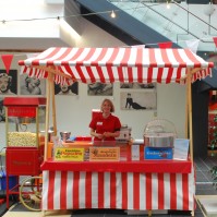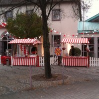 Ein toller Stand. Nostalgisch rot-weiß für Oktoberfeste, Jahrmärkte und Weihnachtsmärkte.