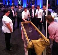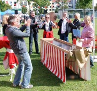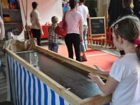Wett- und Zielschieben mit Bierkrügen.