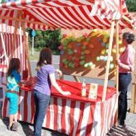 Spickerwerfen / Luftballondarten am nostalgischen Marktstand.