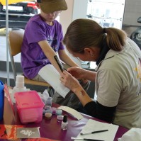 Mit einem speziellen Hautkleber wird eine Grundschicht aufgetragen und dann mit farbenfrohem feinsten Glitzer das Tattoo geformt.