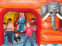 Das Arche Noah ist eine Form der klassischen Hüpfburg, erweitert mit interaktiven Spielmöglichkeiten,