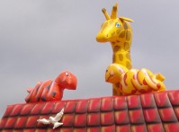 Riesige Hüpfburg, phantasievoll als Arche Noah gestaltet