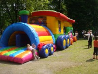 Eine bunt gestaltete Riesen-Hüpfburg im Design eines Zuges. Hier müssen die Kleinen keine Lockführer sein! Toben, Kriechen, Springen, Klettern und vieles mehr. Eine riesen Spielwelt! Die Lock besteht aus zwei Teilen und kann auch einzeln gebucht werden! Unsere geschulten Mitarbeiter sorgen für die Sicherheit der Kinder während Sie ohne Bedenken die Veranstaltung genießen können.
