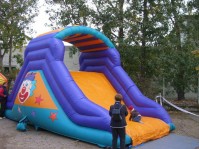 Die Rutsche ist in 30 Minuten einsatzbereit und wird mit einem Lüfter mit 230V Stromanschluss betrieben.