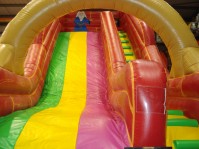 Die Rutsche ist in 30 Minuten einsatzbereit und wird mit einem Lüfter mit 230V Stromanschluss betrieben.