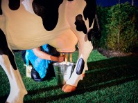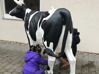 Ein lustiges, unterhaltsames Wettmelkspiel für jedermann. Eine lebensgroße Kuhattrappe zum Wettmelken.