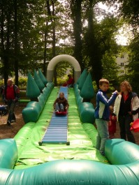 Unsere große aufblasbare Rollenrutsche bietet den Kleinen einen Rutschspaß auch ganz ohne Berge und Schnee. Nehmen Sie in unseren Kunststoffschlitten platz und jagen Sie über die Rollenbahn die aufblasbare Rutsche hinunter. Die Rollenrutsche ist sowohl für Kids als auch für Erwachsene geeignet, denn wir bringen auch Bobs in XL mit. Die Rollenrutsche ist eine tolle Alternative zu den aufblasbaren Klassikern wie Hüpfburgen und Rutschen. Unser geschulter Mitarbeiter sorgt für die Sicherheit der Kinder während Sie ohne Bedenken die Veranstaltung genießen können.