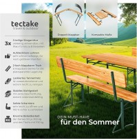 Dadurch sind der Gartentisch klappbar und die Bänke ideal für Gartenpartys,