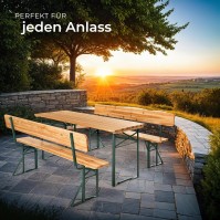 Die einfache Handhabung macht diese Klappgarnitur zu einem Must-have für jeden Anlass.