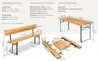 Der Campingtisch klappbar und die Bierbänke bestehen aus