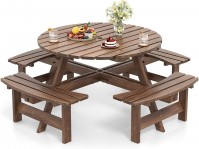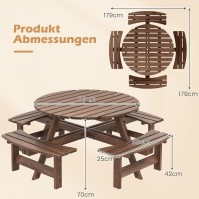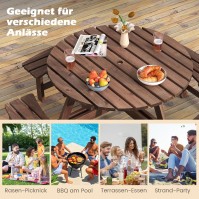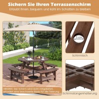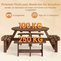 Picknicktisch-Set Gartentisch Campingtisch Gartenmöbel Bierzeltgarnitur Terrassenmöbel Sitzgruppe 8 Personen Holz Schirmloch 4 Bänke runde Sitzgruppe Garten