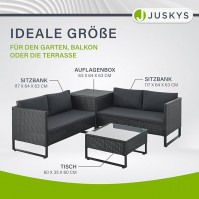 Gästesitzecke Kundensitzecke Messemöbel 4 Personen Polyrattan Lounge Messelounge mit Beistelltisch Aufbewahrungsbox Set Rattan Sitzecke wetterfest Schwarz L-Form