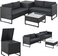 Gästesitzecke Kundensitzecke Messemöbel 4 Personen Polyrattan Lounge Messelounge mit Beistelltisch Aufbewahrungsbox Set Rattan Sitzecke wetterfest Schwarz L