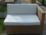Der sandfarbene Rattan-Sessel mit Armlehne links ist aufgrund des wetterfesten Polyrattan-Geflechts für den Innen- und Außenbereich geeignet. Ein leichtes Aluminium-Gestell ermöglicht das einfache Platzieren und Transportieren des Sessels.