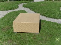 Der sandfarbene, kleine Rattan-Tisch ist aufgrund des wetterfesten Polyrattan-Geflechts für den Innen- und Außenbereich geeignet. Ein leichtes Aluminium-Gestell ermöglicht das einfache Platzieren und Transportieren des Tisches.