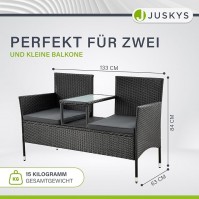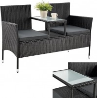 Messemöbel Polyrattan Sitzbank Monaco mit integriertem Tisch für 2 Personen 63 x 133 x 84 cm