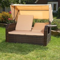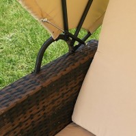 Sonnenbett Strandkorb Lounge aus Polyrattan braun inkl. klappbaren Seitentisch + verstellbarer Rückenlehne + faltbares Sonnenschutzdach