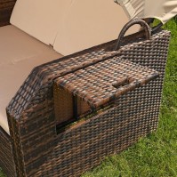 Sonnenbett Strandkorb Lounge aus Polyrattan braun inkl. klappbaren Seitentisch + verstellbarer Rücke