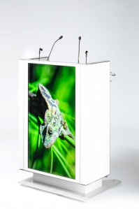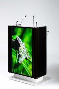 “The One” Rednerpult mit Bildschirm, höhenverstellbar, wechselbare Optik