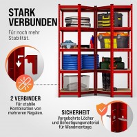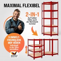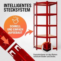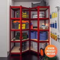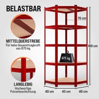 Ecklagerregal Schwerlastregal 180 x 70 x 40 cm 875 kg 5er MDF Regal Rot