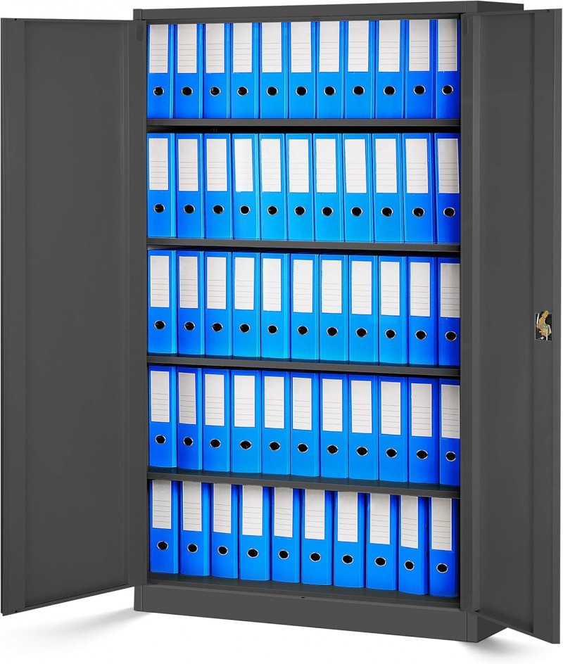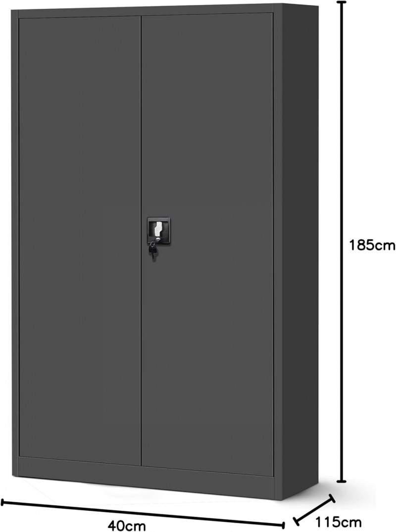 Metallschrank XXL Aktenschrank Stahlschrank Büroschrank Flügeltüren Pulverbeschichtung 185 x 115 cm x 40 cm anthrazit