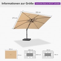Ampelschirm Sonnenschirm 270 x 350 cm rechteckig mit Kurbel großer Gartenschirm neigbar 360°