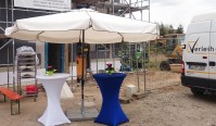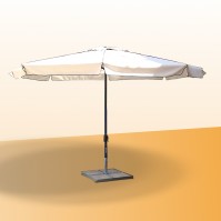 Großer sektfarbener Sonnenschirm für jede Gelegenheit. Schattenspender für Ihr Fest mit passendem Ständer mit schweren