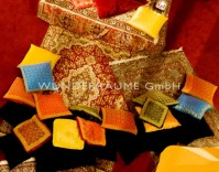 Miete/Verleih von Themendekoration, Erlebniswelten, Raumdeko, Eventdekoration, Eventdeko, Fotokulisse, Präsentation, Bühnendeko, Kissen, Sitzkissen, 1001 Nacht, Orient, Orientdeko, Orientmöbel