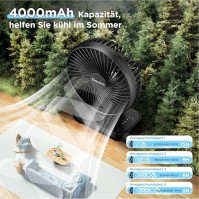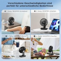 Tischventilator Akku USB-Ventilator 4000 Akku Klein Tragbar 4 Geschwindigkeiten Ventilatoren Leise Mini Wiederaufladbar Standventilator für Home Office