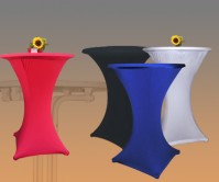 Einfach schick für jeden Messeauftritt, jede Party oder jede andere hochwertige Veranstaltung: Stehtisch-Hussen passgenau in stylischer Stretch-Optik.